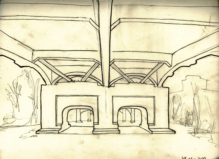Yesterday David and I documented the pre-reno fieldhouse with some photos. David took some test shots first with his digital camera (shown here) and then we chose four shots for the 4x5 camera. Can't wait to see the prints!